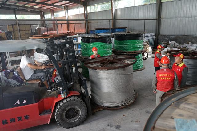 7月12日上午8点,随着低沉的发动机声音骤然响起,国网上饶市广丰区供电公司送往兄弟单位国网鄱阳县供电公司的抗洪应急物资——10吨钢芯铝绞线由叉车缓缓送出仓库开始装车。