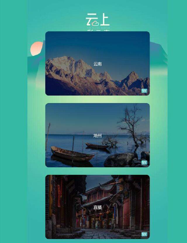 “云展厅”的入口处,一个立体的地形沙盘勾勒出云南的山川地貌,高原起伏,河谷密布,一块神奇而多样的土地。点击“VR云南”上面的交互热点,就可以看到“七彩云南旅游天堂”的宣传片和16州市著名景点的风光片。