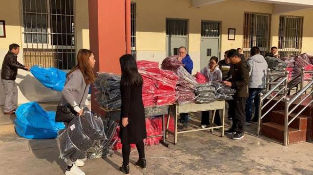 当我们到达学校时,孩子们正在上课,教室里不时传来老师的讲课声和同学朗朗的读书声。虽是初冬,但也是寒风彻骨,看着孩子们冻的通红的脸蛋,我们加快了搬运物资的步伐。