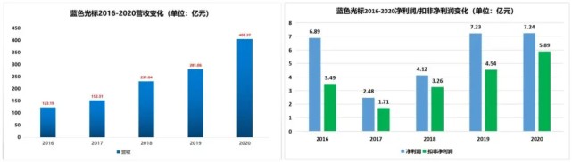 自2016年起,蓝色光标单年营收踏入百亿级别。纵观2016-2020年,其业绩稳步增长。