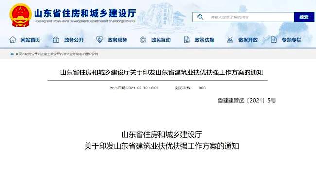 6月30日,山东省住房和城乡建设厅官网发布《山东省住房和城乡建设厅关于印发山东省建筑业扶优扶强工作方案的通知》(以下简称《方案》)。《方案》显示,山东拟通过扶优扶强,培育发展一批大而强的特级企业、专而精的专业企业、带动力强的外出企业、辐射面广的全产业链企业、影响力大的高端企业,打造“齐鲁建造”品牌,推动建筑业高质量发展。