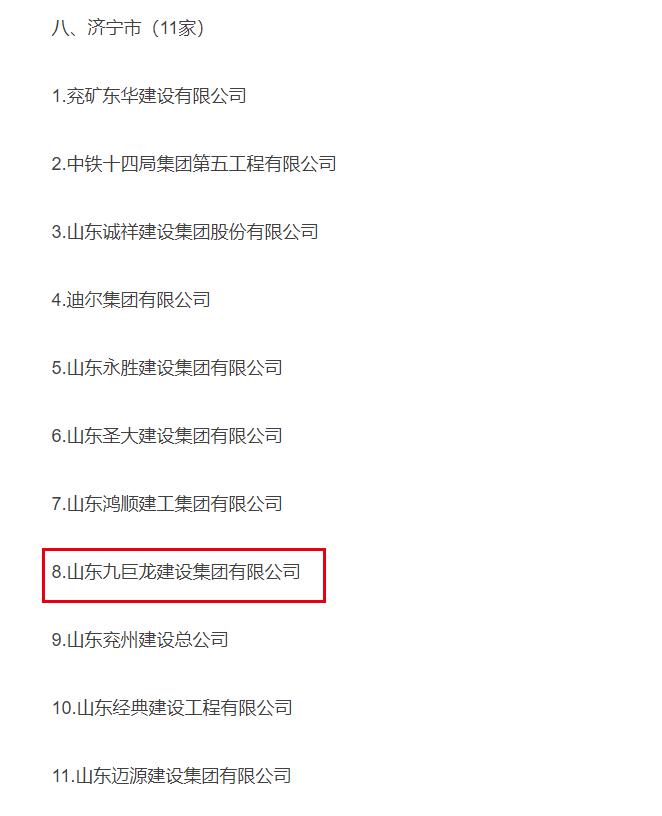 《方案》要求各市对组织申报的重点扶持企业,参照上述5项目标,找准每家企业的优势短板和发展方向,逐一量身定制扶持政策和帮扶措施,明确专人面对面指导、一对一服务。在同时公布山东省建筑业重点扶持企业名录,共有181家企业入选,其中济宁11家,九巨龙入选!