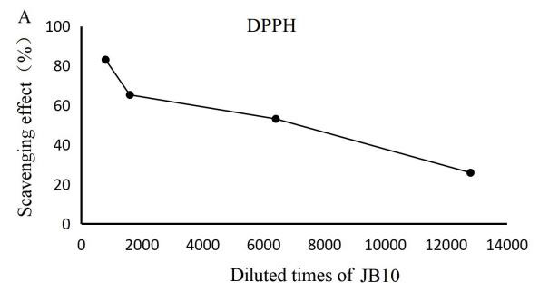 采用DPPH自由基清除试验和羟自由基清除试验对解本10号的抗氧化活性进行评价。对于DPPH自由基清除试验,将200微升样品和2 ml 400μL DPPH溶液(溶解于70%乙醇溶液中)在室温下反应1 h。在517 nm处用含有DPPH和70%乙醇溶液的空白测量吸光度。DPPH自由基清除率(%)的计算公式如下:
