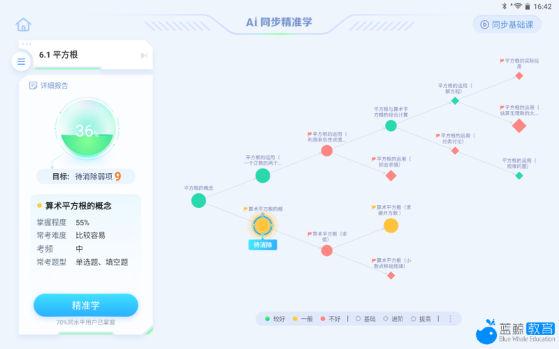 进入精准学,解锁相关知识点的微课视频,看完视频后进入精准练环节,进一步加强对薄弱知识点的练习和掌握,真正找准并消除知识薄弱项,做到因材施教的个性化自适应教学。