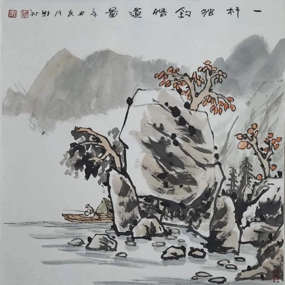作品《独钓寒江雪》2018韩国清州中韩国际书画展上获奖;