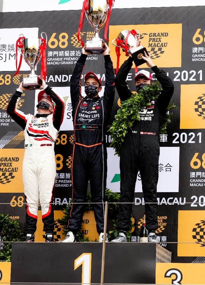 中国澳门特别行政区,2021年11月21日。经过三天的激烈角逐,第68届澳门格兰披治四级方程式大赛圆满收官。作为赛事专用轮胎,全球知名轮胎制造商锦湖轮胎旗下的高性能比赛用胎ECSTA S700燃情登场,凭借卓越的技术配方和出色的运动操控性能,在澳门东望洋赛道上大放异彩,助力赛车手梁瀚昭率先冲线,卫冕桂冠。