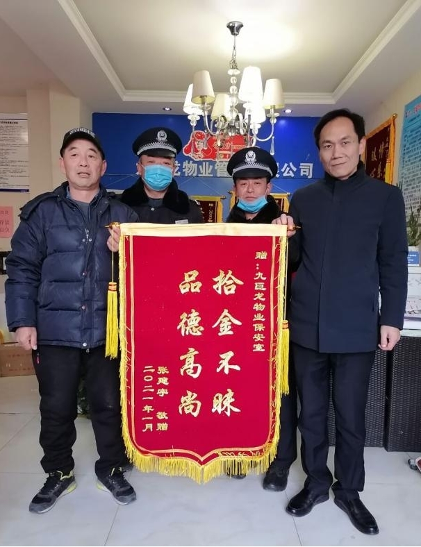 (九巨龙业主常老师向物业服务中心送上‘拾金不昧’锦旗)