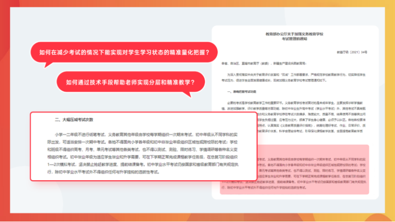 于是我们就在思考,怎么样在减少考试的情况下能实现对学生学习状态的精准量化把握?如何能通过技术手段让老师及时有效的发现每个孩子学习的薄弱点,帮老师实现分层和精准教学?
