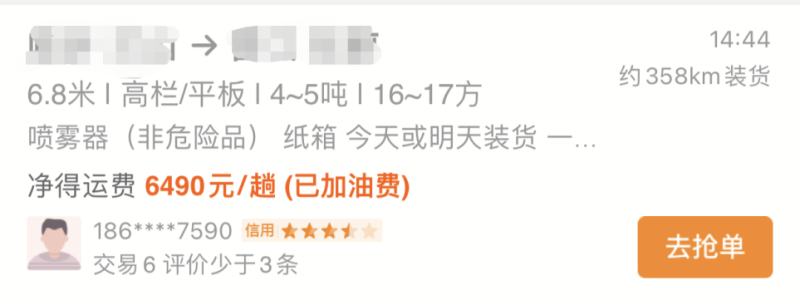 司机端app货源页显示,该票货的货主已加油费