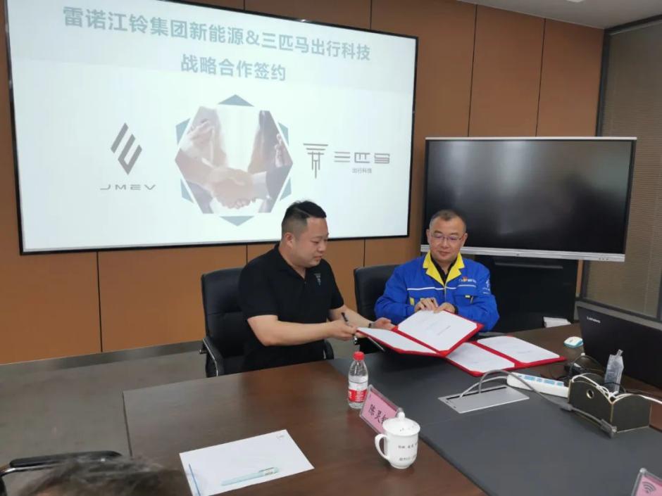 5月12日,深圳三匹马出行科技有限公司(股票代码:873486)和江铃集团新能源于江铃集团新能源新工厂签署战略合作协议。三匹马出行董事长李庄祥、副总史想、副总严浩川等;江铃集团新能源汽车公司党委书记、副总经理单丰武等一行出席仪式。