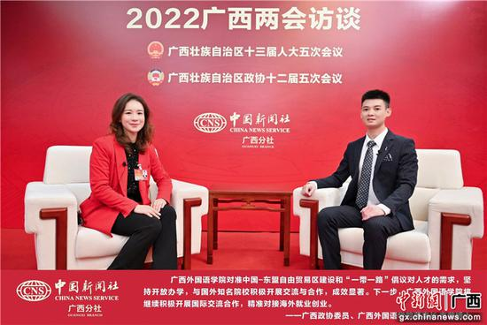 图为广西政协委员、广西外国语学院董事长韦茜接受中新社、中新网采访。俞靖 摄