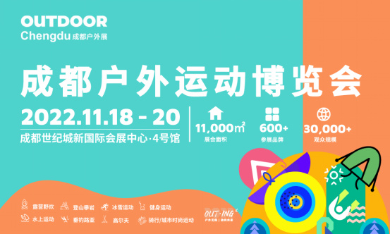2022年11月18~20日,2022 OUTING X西部户外生活节暨成都户外运动博览会(下文简称:2022成都户外展)将在成都世纪城新国际会展中心盛大举办。本届展会规模11,000平方米,汇聚600多个品牌集中亮相,预计将吸引超3万行业人士及爱好者参观采购。以“多元运动+场景化展示+沉浸式体验”的独特形式,充分融合成都雪山下的公园城市地理优势,2022成都户外展将为西南地区带来一场极富专业性与娱乐性的大型户外运动嘉年华。现距离展会开幕仅剩100天,诚邀登记报名,共赴户外行业年度盛会,续话千年蓉城冰雪奇缘。