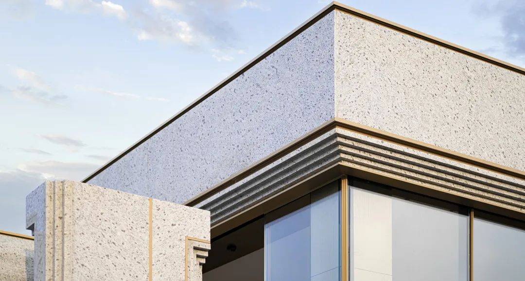 在现代简约的建筑风格,浅色仿石涂料金色画框,结合玻璃窗构筑的“油画框”般艺术立面,在暖色调的整体质感下,让项目建筑群在板块卓立群伦,具有标识性。