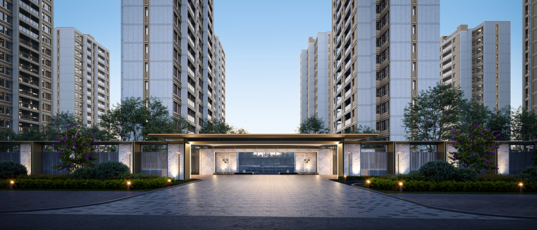 时尚、艺术入口大门,多层情境入户体验,仪式感对称的迎宾水景和景墙,铺展尊崇归家礼仪轴。
