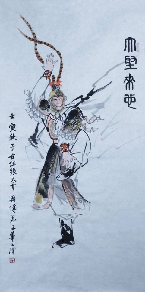 华玉清,国家一级美术师,于右任、徐悲鸿再传弟子,京剧表演艺术科班出身,师从沈飘芳,刘福喜单连生。舞台生活十年,二郎神一角就演了八年。