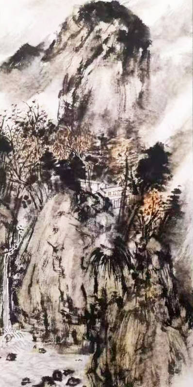 作为今年来上升势头非常猛的画家,杨开刚对山水画有着他自己独到的理解。疫情几年来,其他人都在为闭门不出而苦恼困惑,他却乐在其中,闭门谢客专心于书画的海洋世界,在攀登高峰。再次见到杨开刚老师,还是一如既往的爽朗豁达,炯炯有神的眼睛看着你,眼神中透露出真诚与执着,谈话中,哈哈的笑声不绝于耳。