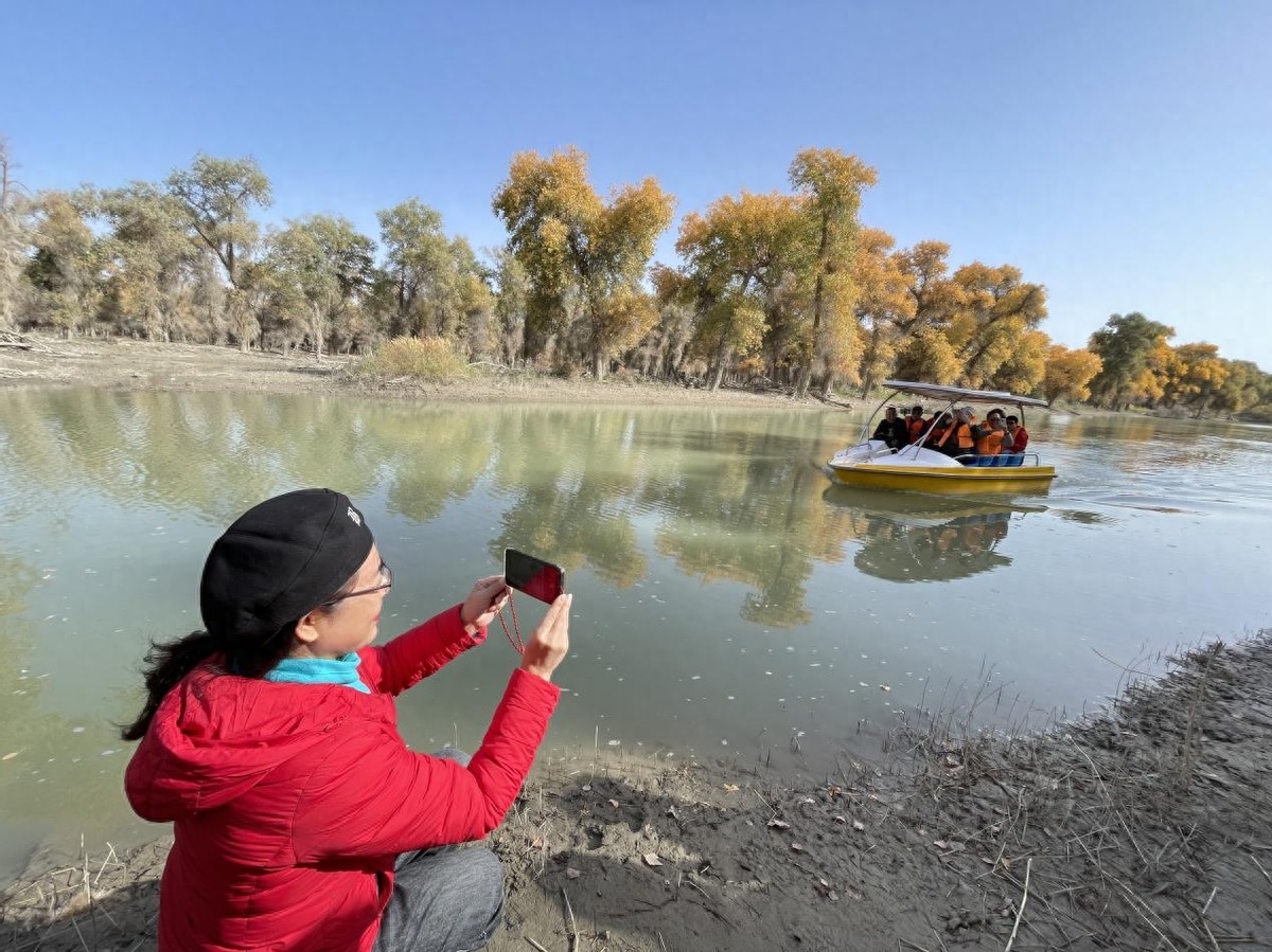 这里的胡杨林集塔里木河自然景观、沙漠景观为一体,是新疆观赏胡杨林最佳地之一,每年都会吸引中外游客来这里观赏打卡。(艾世民摄影报道)