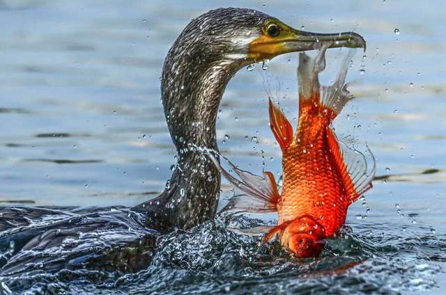 ▲《鸬鹚吃红鱼》 顾玉玺(大连)