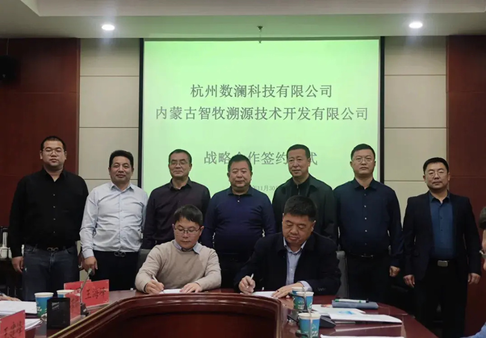 在座谈会上,杭州数澜科技有限公司与内蒙古智牧溯源技术开发有限公司签署了合作意向战略协议,为下一步两地在信息化、数字化层面进一步合作打下基础。