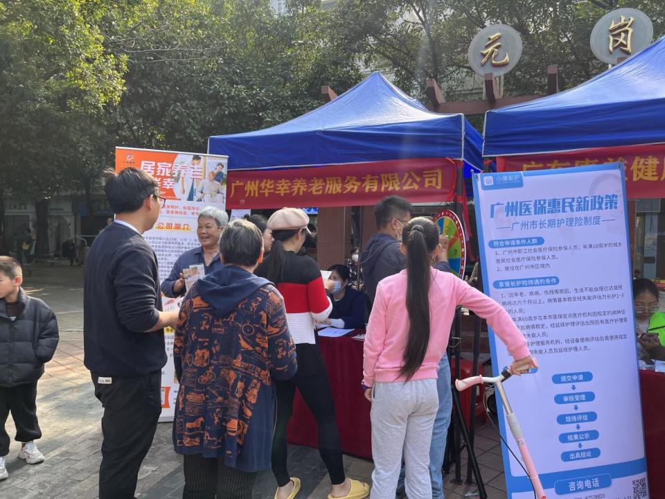2024年1月6日,由元岗街道党工委、元岗街道办事处、广州市北斗星社会工作服务中心承办,元岗街新时代文明实践所、元岗街公共卫生委员会、元岗街“双百工程”社工站、上元岗社区居委会、南兴社区居委会、下元岗社区居委会、中人社区居委会、天源社区居委会协办,中国老龄事业发展基金会老年维权基金管理委员会指导,在上元岗公园开展“老有所依·情暖夕阳”元岗街社区微型养老博览会,通过平台对接,向社区居民宣传并介绍正规养老的途径及养老服务内容。天河区民政局副局长刘秋生、元岗街道党工委副书记赵琦、元岗街南兴社区居委会主任谭安慧、元岗街下元岗社区居委会主任谭淑明、元岗街“双百工程”社工站主任龚灿、广州市北斗星社会工作服务中心理事长梁国勇、中国老年维权基金委员会幸福金龄工作组秘书长周晓波、中国老年维权基金委员会幸福金龄工作组主任高峰、广州市盈泽信息科技有限公司吕晓玲出席本场活动。