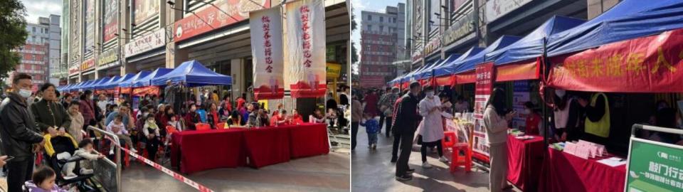 除了台上精彩的表演,台下也有丰富多样的摊位服务,公益时间平台宣传、助老服务宣传、社工服务咨询、义诊、法律、羊城家政、养老服务等多个摊位一体,为员村居民提供便民服务,均受到社区居民的热烈关注,各个摊位前站满了前来咨询的居民,工作人员耐心、专业的服务态度,受到了居民的广泛好评。