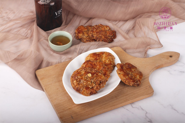 像这样一块来自玛芝莲的鸡仔饼,酥脆可口,咸香可口,遵循古法制作,精湛工艺纯手作,好吃健康有滋味,让每一块鸡仔饼都可口动心。