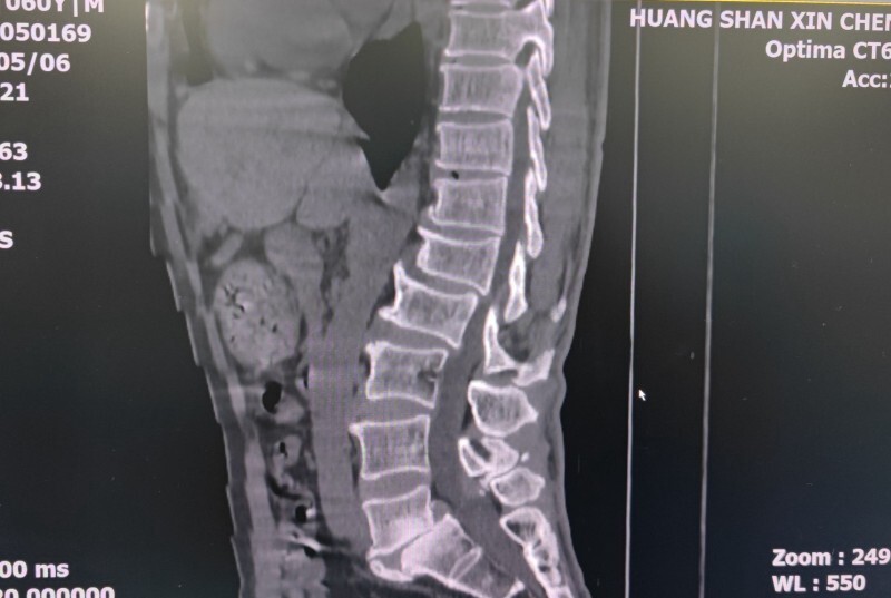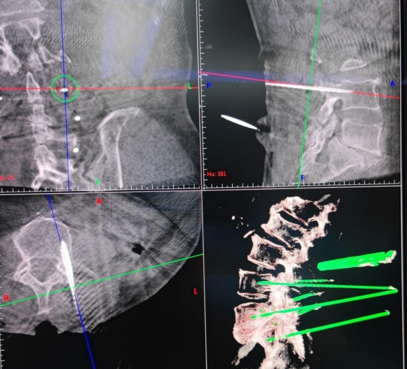 方先生,60岁。腰背部疼痛反复发作5年有余,期间也曾在多家医院就诊治疗过,效果不太明显,最近因为病情加重,慕名来我院就诊。5月14日新晨医院骨科为他实行了一台特殊的手术,骨科专家们特别邀请到一名“硬核医生”——机器人“天玑”参与其中。手术进行得十分顺利,这台手术是黄山新晨医院完成的第二台机器人辅助下手术,也是黄山首例“天玑”机器人辅助微创脊柱手术。