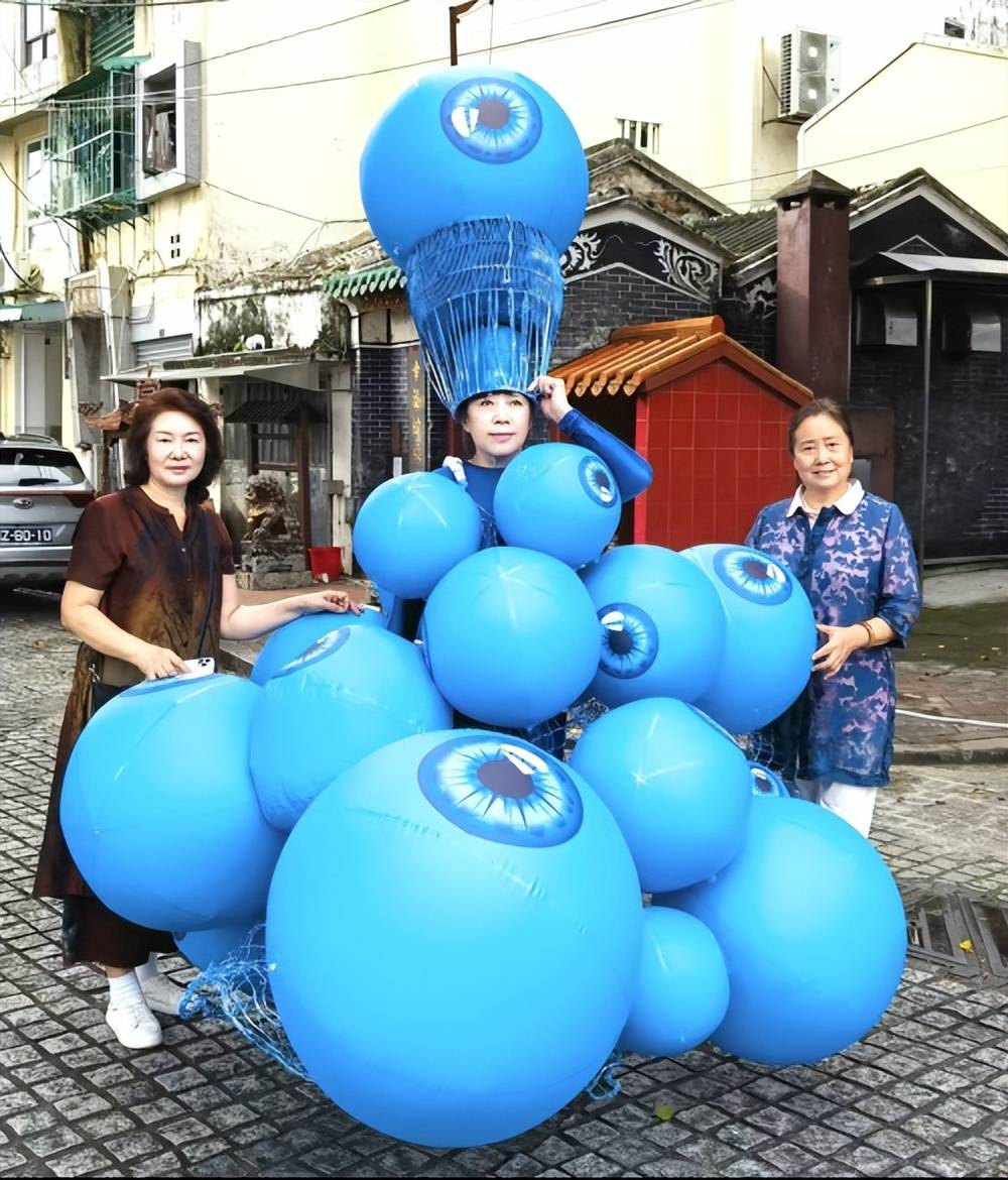 天空之眼这个作品是孔宁"小蓝人"系列作品,即生命是一滴水. 轻轻的来轻轻的走不给地球增加重量,孔宁说天空每分每秒都在注视着人类,关爱着人类,也希望人类能够时刻爱地球保护地球。