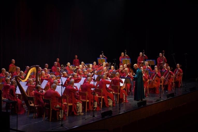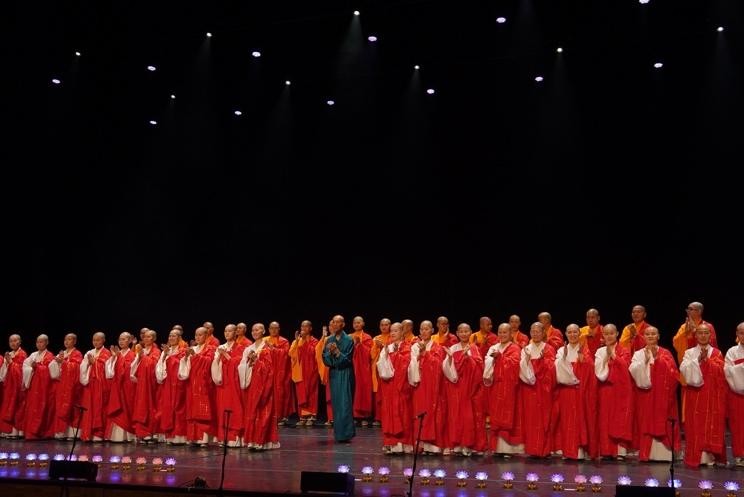 演出当晚,僧侣音乐家们以深沉的禅意诠释经典乐章,如吕其明的《红旗颂》序曲,以及贝多芬的《艾格蒙特》序曲。演出现场的气氛庄严而宁静,观众在音乐中时而沉思,时而潸然泪下,感受到内心深处的平和与感动。演出结束后,许多观众久久不愿离去,纷纷上台与僧团成员交流感想,表示受到了禅意音乐的启迪和心灵的震撼。