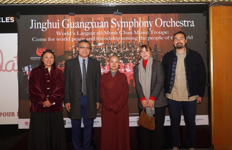 2024年11月8日 晚,悟乐交响乐团(前称净慧广玄交响乐团)在瑞士日内瓦的莱蒙剧院(Théâtre du Léman)圆满完成了其首次欧洲巡演的最后一站。此次日内瓦站的演出得到了日内瓦旅游局、瑞士中华文化促进会、洛桑学联等机构的大力支持。这支由禅宗僧侣组成的独特交响乐团,以“为了世界和平,为了人民友谊”为主题,沿途穿越七个国家十余座欧洲文化名城,用禅意音乐触动心灵,以艺术诠释东方智慧与和平理念。作为象征和平与多元文化交流的城市,日内瓦这个“国际和平之都”的文化底蕴与悟乐交响乐团的理念高度契合,吸引了千余名观众齐聚现场,为这场充满禅意的音乐会画上了圆满句号。