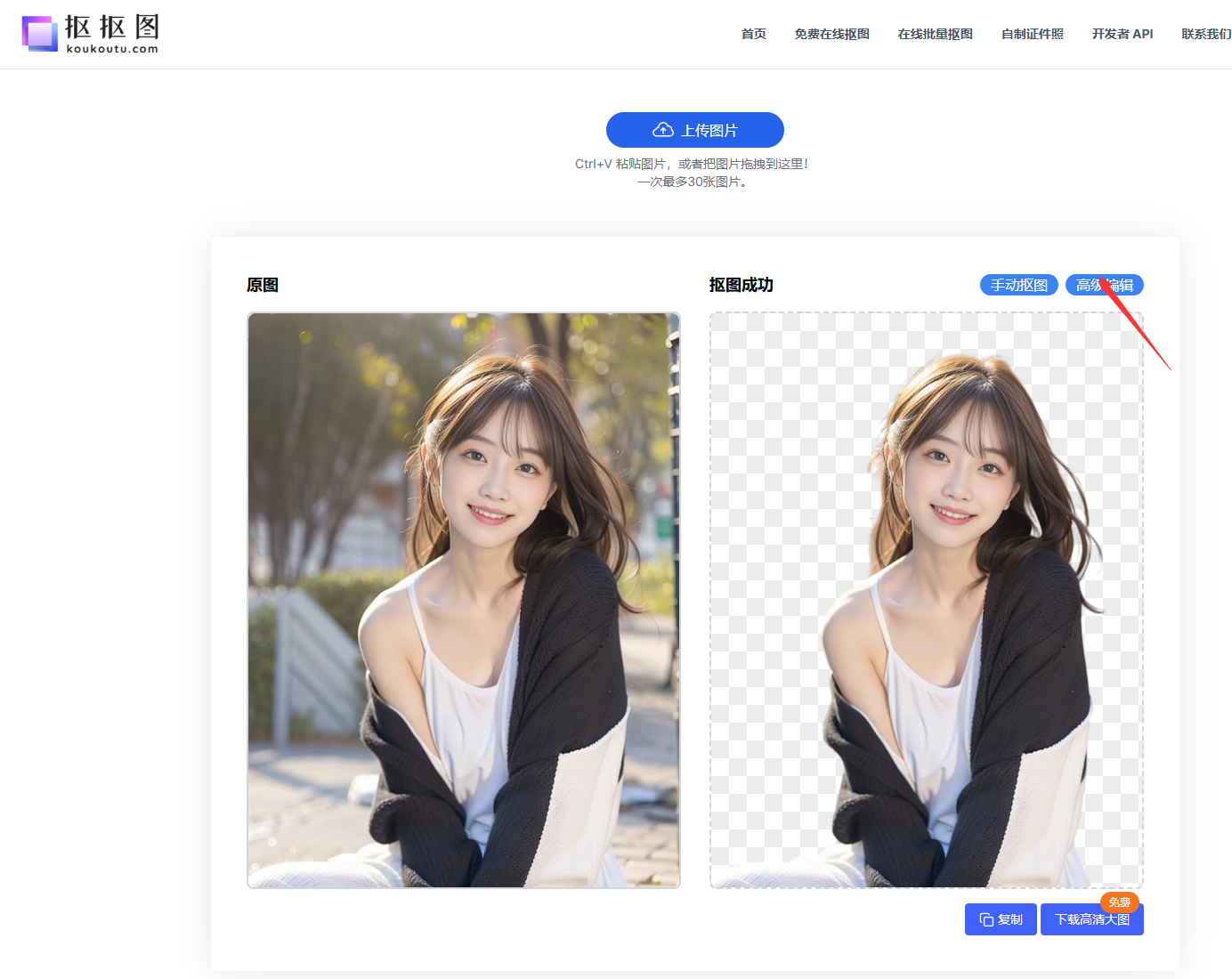 上传一张你想抠的图像,只需1-3秒就能快速完成抠图。