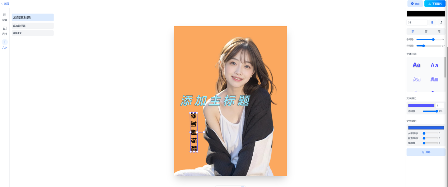 添加文字,简单的文字编辑,可进行文字调整,样式更改,让创作更简单。