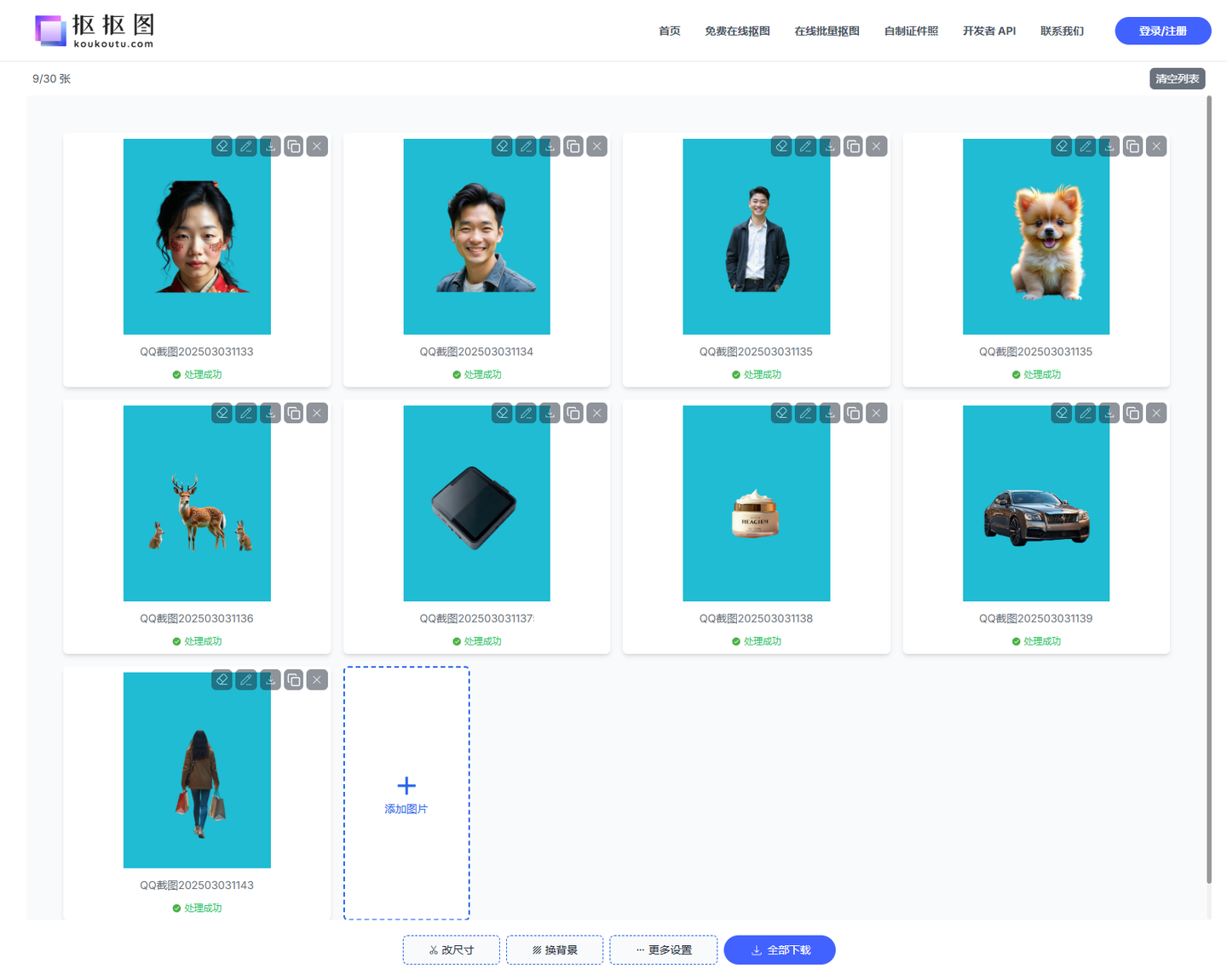 无论是人像、动物、产品、汽车、复杂背景都能轻松拿捏,还可以批量修改尺寸、更换背景以及更多批量设置功能,非常方便。