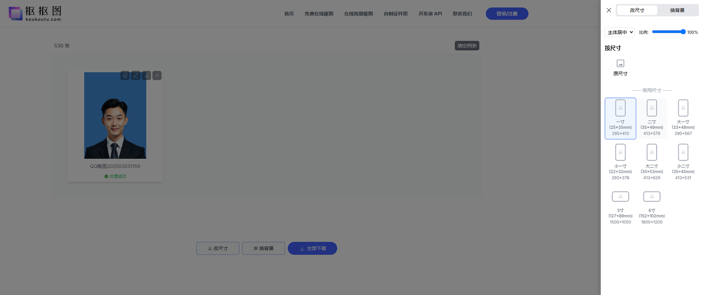 这样一张证件照就制作完成了,只需三步,是不是超简单,制作完成直接点击下载即可。