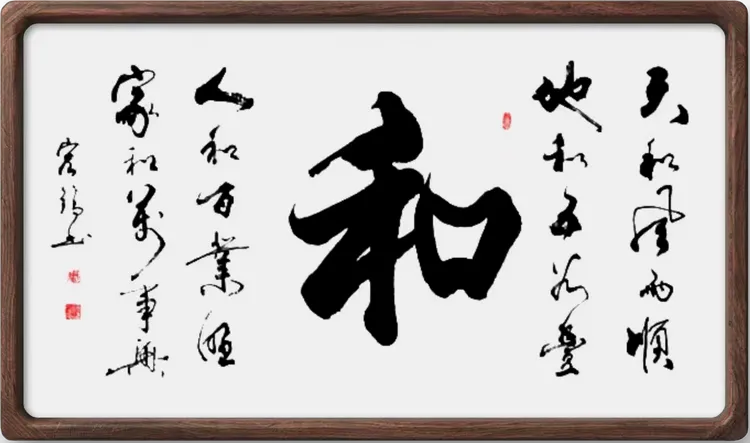 6、在全国热播影视剧《春天里》中,上屏率最高的背景墙上,挂的就是其《和》字书法。