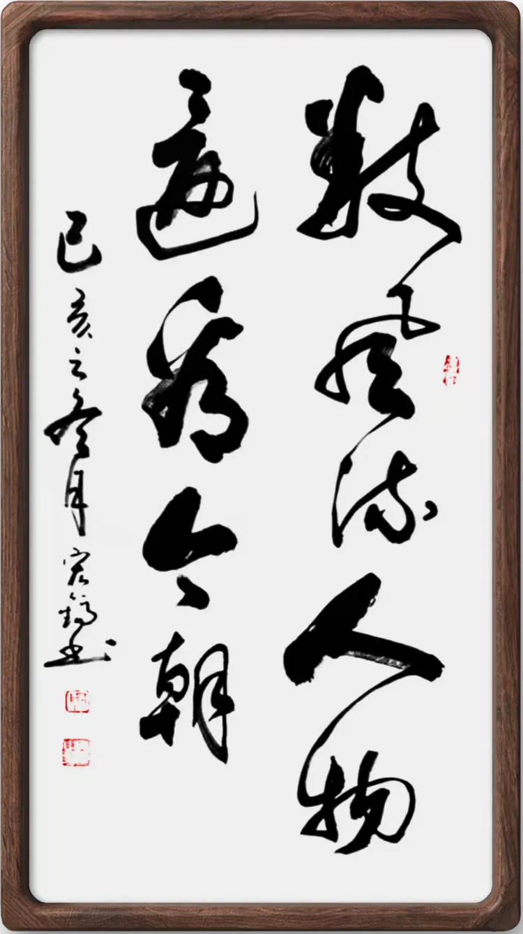 1、2017 年书法作品《江流归大海·高路入云端》被光荣镌刻在北京八达岭长城脚下的新长城文化园的石碑上,无上荣光。此后,2017 年 11 月受邀作为艺术家的代表,参加了在北京举办的“2017 长城论坛特别峰会”。