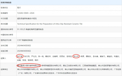 同时,为了进一步规范防滑瓷砖品类发展,促进防滑瓷砖生产制备管理与行业良性竞争,碧虎瓷砖以强大的实力和号召力,由碧虎创始人彭天奎、市场总监陈义芳牵头制定《超防滑瓷砖制备技术规范》、《陶瓷大板》以及《干压瓷质砖》三大团体标准,旨在明确超防滑瓷砖性能指标,保护万千家庭的行走安全。