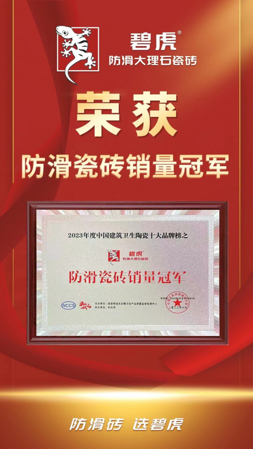 在竞争激烈的瓷砖行业,碧虎防滑砖再次以卓越的实力地位、影响力和销量表现震撼业界,成功蝉联第四届 “中国瓷砖防滑王” 荣誉称号,成为行业中唯一实现 “四连冠” 的防滑砖品牌,碧虎正书写一段难以企及的传奇篇章。