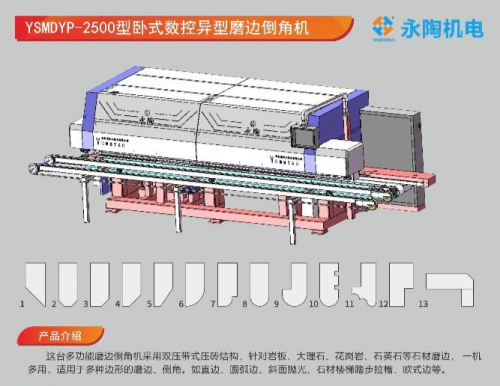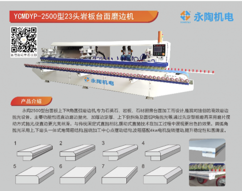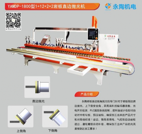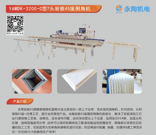 马总宜:永陶机电是一家专业生产陶瓷、石材深加工设备的厂家,主要产品涵盖圆弧抛光机、圆弧线条抛光机、前后刀数控陶瓷切割机、石材线条抛光机、石材直边抛光机、石材抛边抛底机、石材抛面抛边机、岩板加工设备(如岩板45度倒角机、数控岩板智能桥切机),以及石英石加工设备等(如石英石单边小样块磨边倒角机、3头石英石刮平定厚磨平机)。