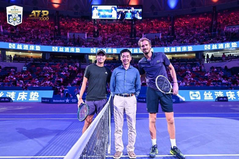 10月8日,丝涟中国中国费鸣杰先生为大师赛挑边开球,以冠军之姿,致敬冠军精神。